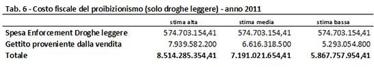 La proposta di legge presentata dal sottosegretario Benedetto Della Vedova e sottoscritta da esponenti di Pd, Forza Italia, Sel, Gal e M5S, punta ad ottenere anche benefici non strettamente fiscali. «La legalizzazione - continua Ofria - non solo incrementa le entrate per lo Stato, ma libera anche risorse attualmente impiegate nella repressione del crimine». Lo studio de laVoce.info cita esplicitamente l’ultima relazione della Direzione Nazionale Antimafia, che ormai sposa la politica della depenalizzazione: «Se si vuole reprimere più efficacemente il traffico di droghe pesanti e ridurre contemporaneamente la liquidità delle organizzazioni criminali va ipotizzata una regolamentazione legale delle droghe leggere». I detenuti per reati di droga costano allo Stato poco più di un miliardo (dati Dap del 2011, gli ultimi disponibili). Sui 37,13 miliardi spesi per le Forze dell’Ordine, Ofria e David calcolano che solo 457,4 milioni sono stati utilizzati per reprimere traffico e spaccio di droghe. «Un risparmio probabilmente sottostimato - aggiunge David - perché basato sulla percentuale di appena l’1,23% di denunciati per traffico o possesso sul totale». La spesa pubblica per sostenere il proibizionismo della droga si aggirerebbe quindi attorno al miliardo e mezzo. Prendendo in considerazione solo le droghe leggere, è invece di 574 milioni.